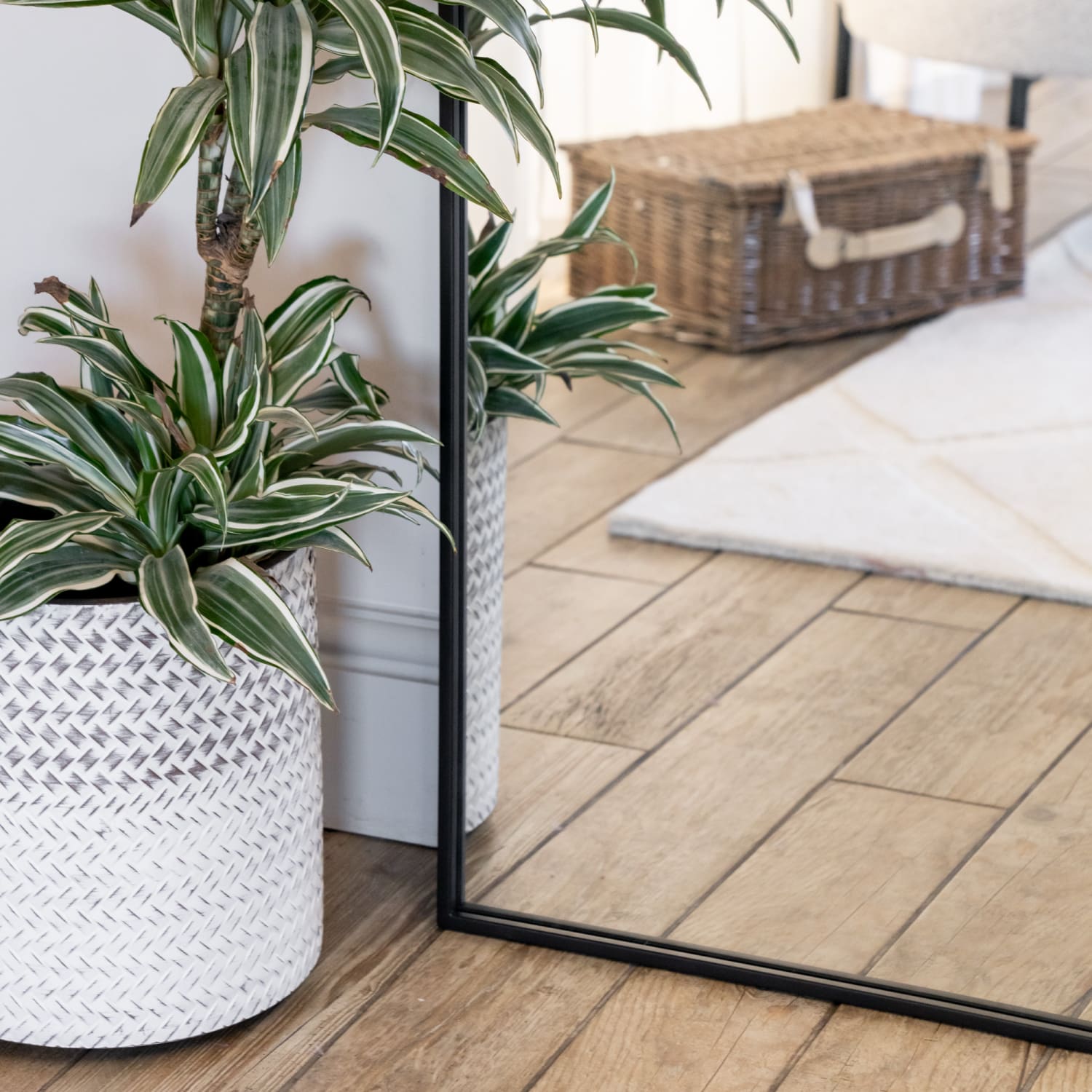 The squared base adds weight and structure to the design, while the sweeping arch softens the silhouette — perfect for echoing curved elements in modern homes. With its fine steel edge and deep vertical proportions, the Akiko Black Mirror functions as both a decorative feature and a practical full-length mirror.