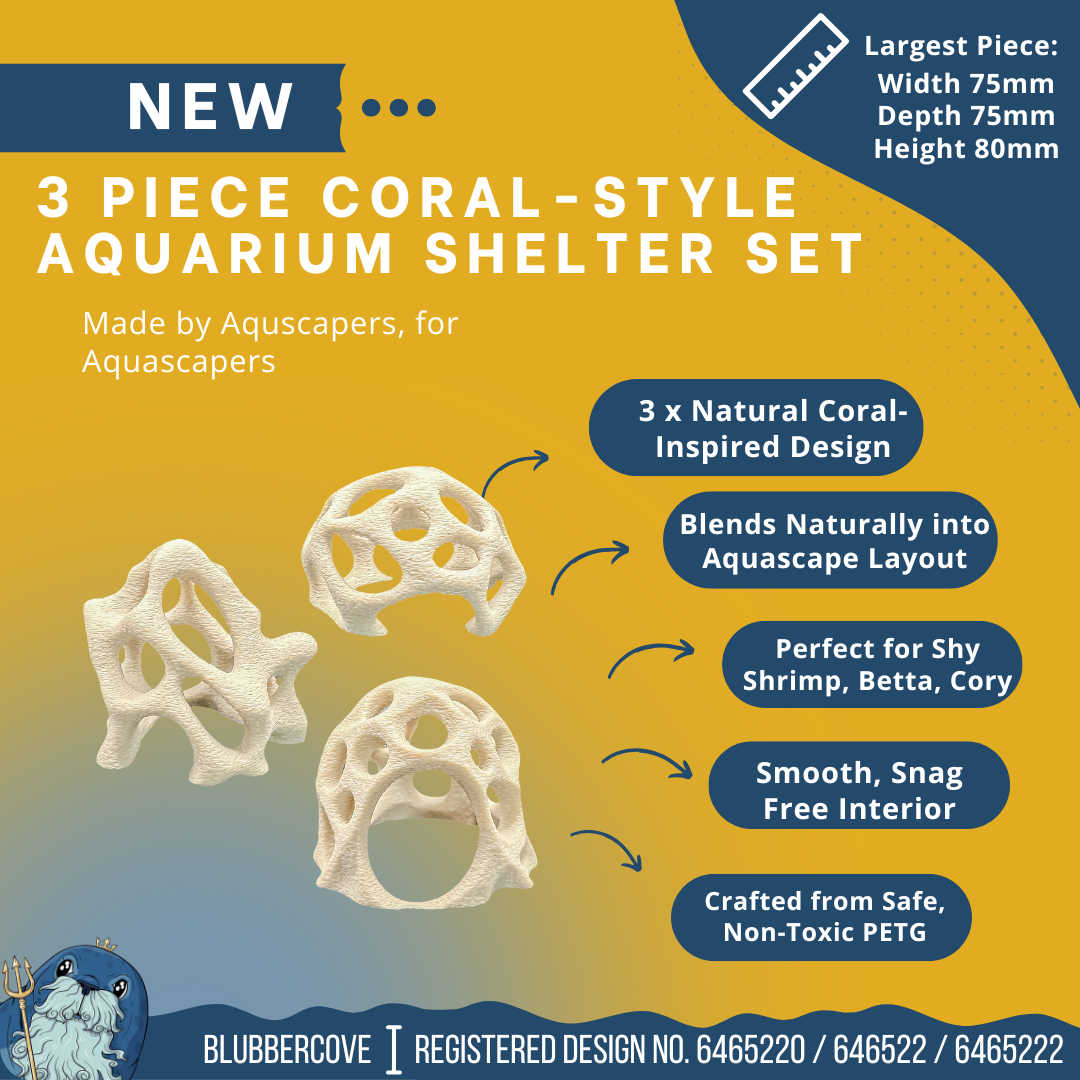 Give your bottom-dwellers a safe and stylish home with our 3-piece coral-style aquarium hide set. Perfect for shrimp, Corydoras, guppies, plecos, and other small fish, these shelters provide both cover and enrichment while adding a natural coral look to your aquascape.