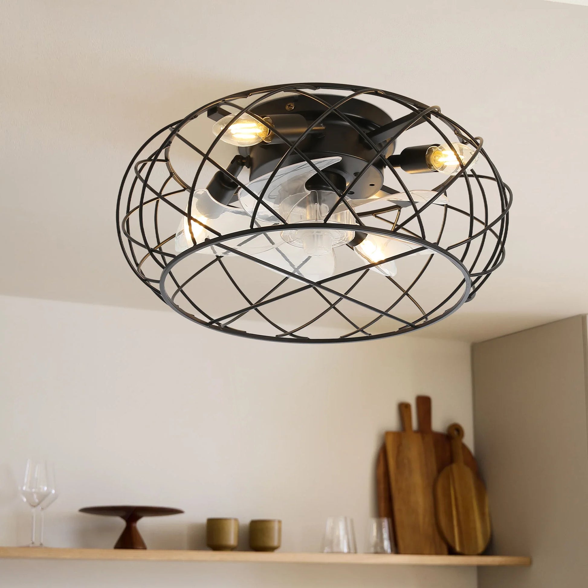 KOMORE Black Cage Ceiling Fan Light with Remote 5 Blades DC Motor for Office, Living Room, Bedroom